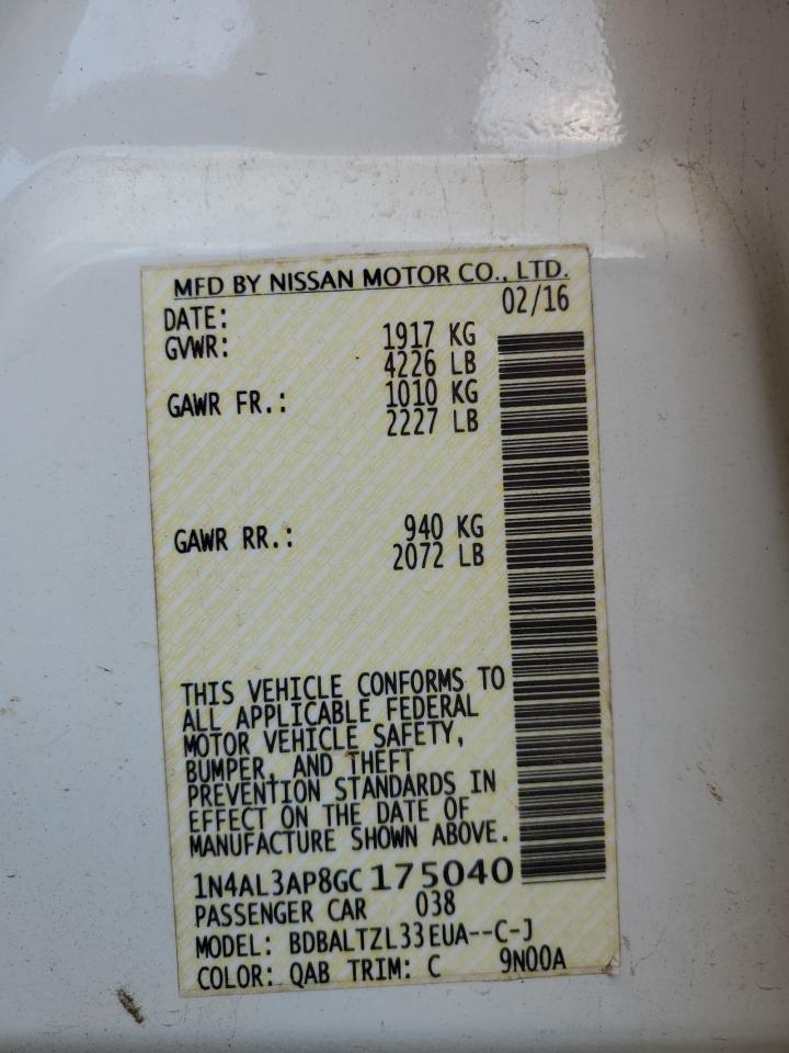 2016 NISSAN ALTIMA - 1N4AL3AP8GC175040, цвет - Белый, 2.5, Бензин, из США