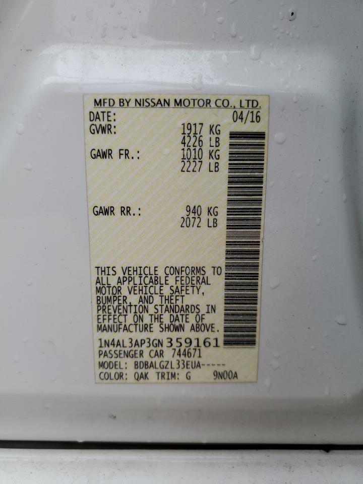 2016 NISSAN ALTIMA - 1N4AL3AP3GN359161, цвет - Белый, 2.5, Бензин, из США