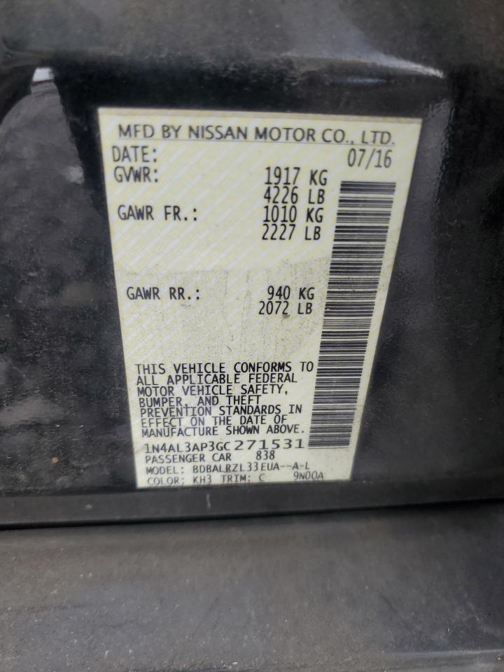 2016 NISSAN ALTIMA - 1N4AL3AP3GC271531, цвет - Черный, 2.5, Бензин, из США