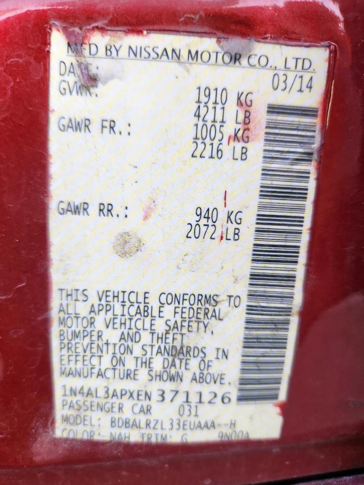 2014 NISSAN ALTIMA - 1N4AL3APXEN371126, цвет - Красный, 2.5, Бензин, из США