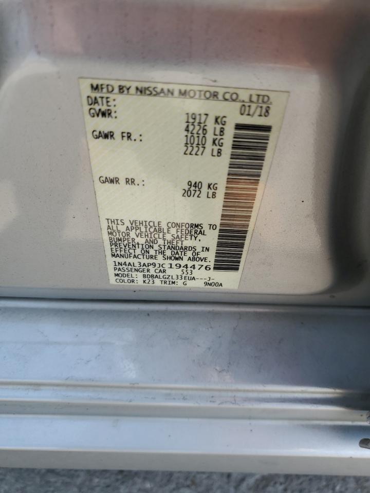 2018 NISSAN ALTIMA - 1N4AL3AP9JC194476, цвет - Серебряный, 2.5, Бензин, из США