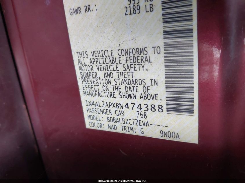 2011 NISSAN ALTIMA BASE