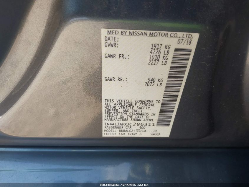 2018 NISSAN ALTIMA - 1N4AL3APXJC286311, цвет - Серый, 2.5, Бензин, Передний привод из США