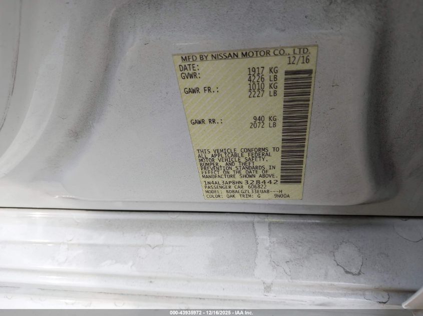 2017 NISSAN ALTIMA - 1N4AL3AP8HN328442, цвет - , 2.5, Бензин, Передний привод из США