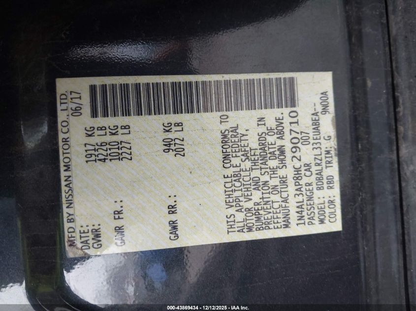2017 NISSAN ALTIMA - 1N4AL3AP8HC290710, цвет - Черный, 2.5, Бензин, Передний привод из США