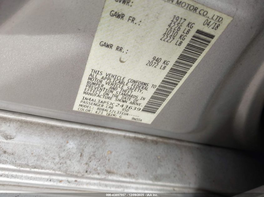 Цвет СеребряныйЦилиндры 4Привод Передний приводVIN 1N4AL3AP5JC243639Состояние Заводится и едет (проверено)Повреждения Передняя левая