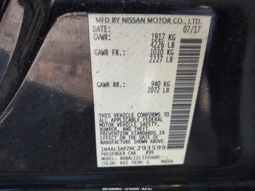 2017 NISSAN ALTIMA - 1N4AL3AP2HC293599, цвет - Черный, 2.5, Бензин, Передний привод из США