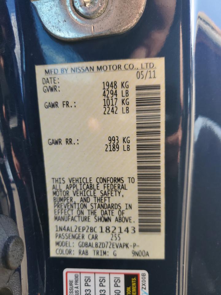 2011 NISSAN ALTIMA - 1N4AL2EP2BC182143, цвет - Синий, 2.5, Бензин, из США