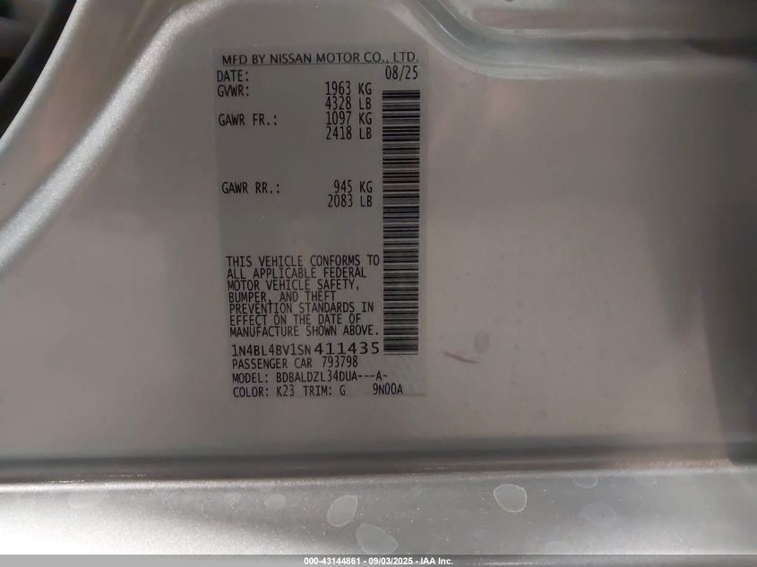 2025 NISSAN ALTIMA - 1N4BL4BV1SN411435, цвет - , 2.5, Бензин, Передний привод из США