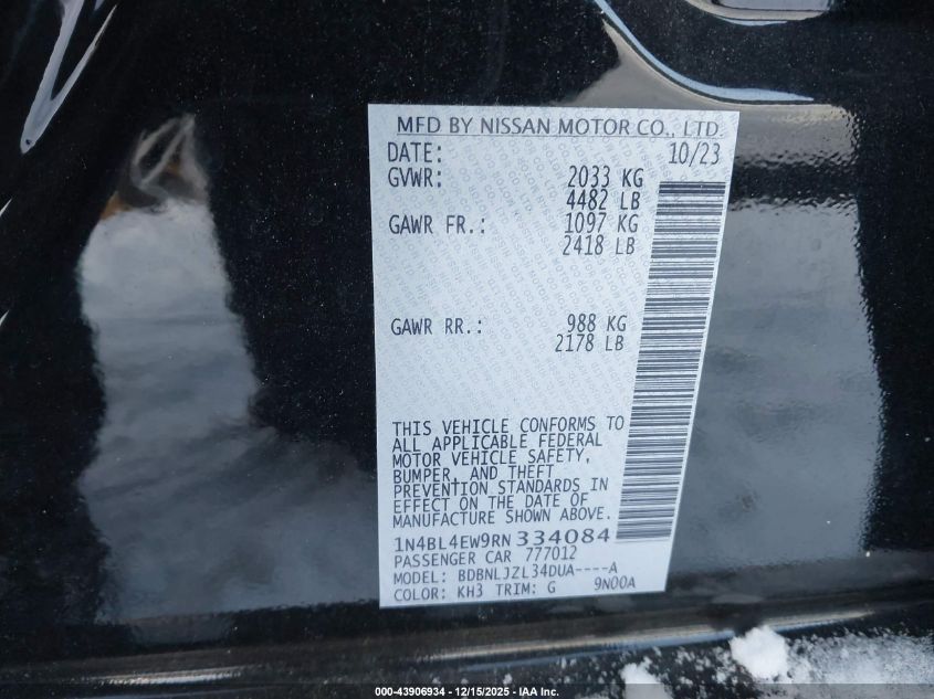 2024 NISSAN ALTIMA - 1N4BL4EW9RN334084, цвет - Черный, 2.5, Бензин, Полный привод из США
