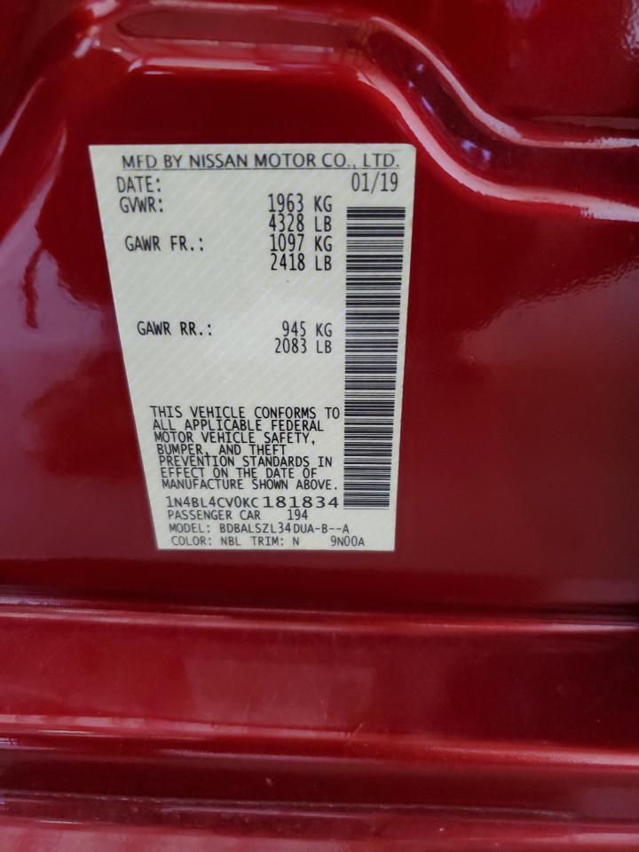 2019 NISSAN ALTIMA - 1N4BL4CV0KC181834, цвет - Красный, 2.5, Бензин, из США