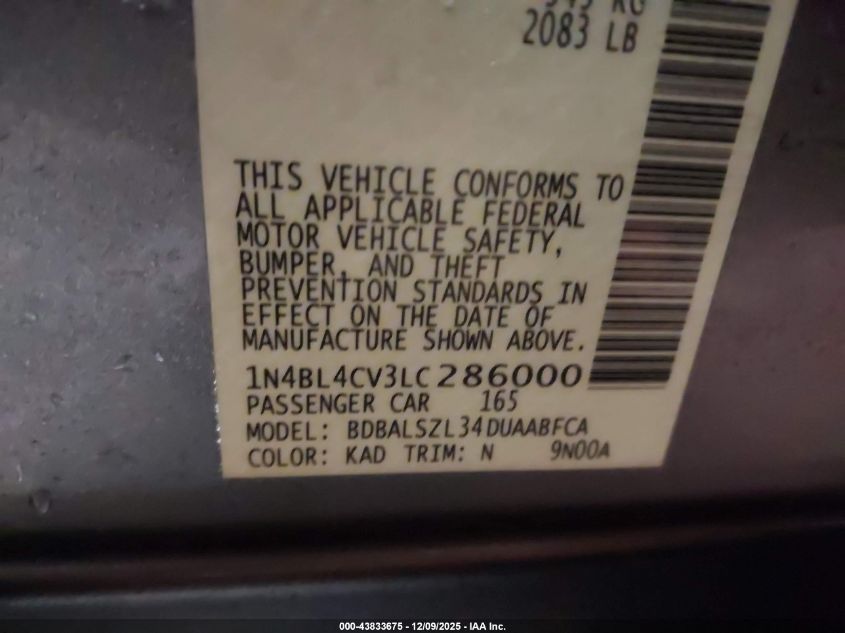2020 NISSAN ALTIMA - 1N4BL4CV3LC286000, цвет - Серый, 2.5, Бензин, Передний привод из США