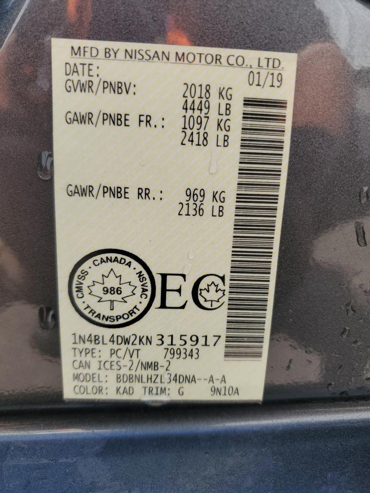 2019 NISSAN ALTIMA - 1N4BL4DW2KN315917, цвет - Серый, 2.5, Бензин, Полный привод из США
