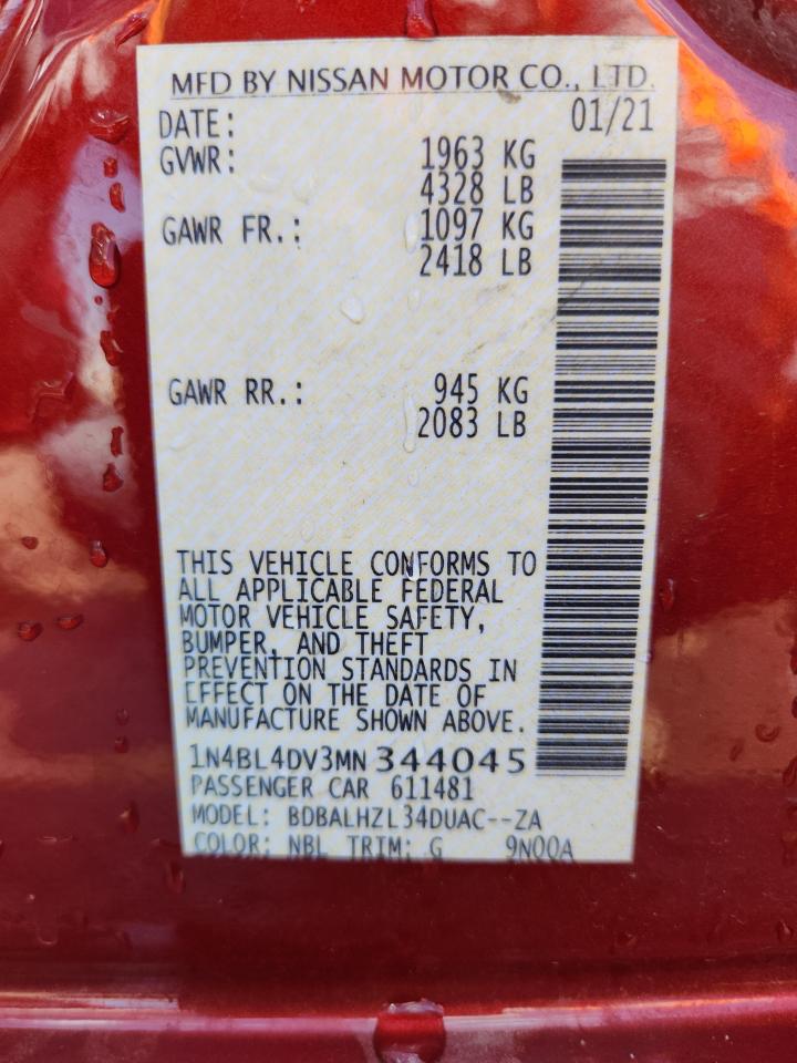 2021 NISSAN ALTIMA - 1N4BL4DV3MN344045, цвет - Красный, 2.5, Бензин, из США