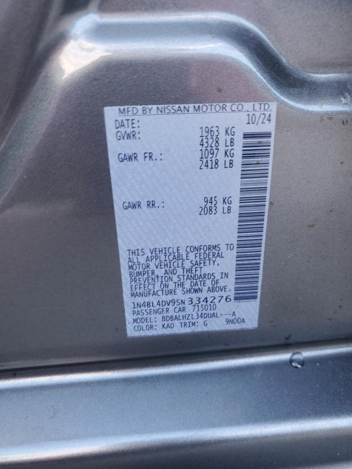 2025 NISSAN ALTIMA - 1N4BL4DV9SN334276, цвет - Серый, 2.5, Бензин, из США