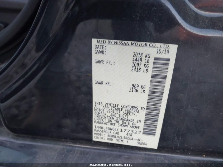 2020 NISSAN ALTIMA - 1N4BL4DW6LC177327, цвет - Черный, 2.5, Бензин, Полный привод из США