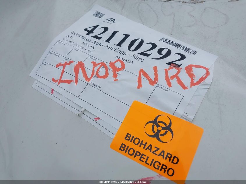 2017 NISSAN ARMADA - JN8AY2NC8H9510930, цвет - Белый, 5.6, Бензин, Полный привод из США