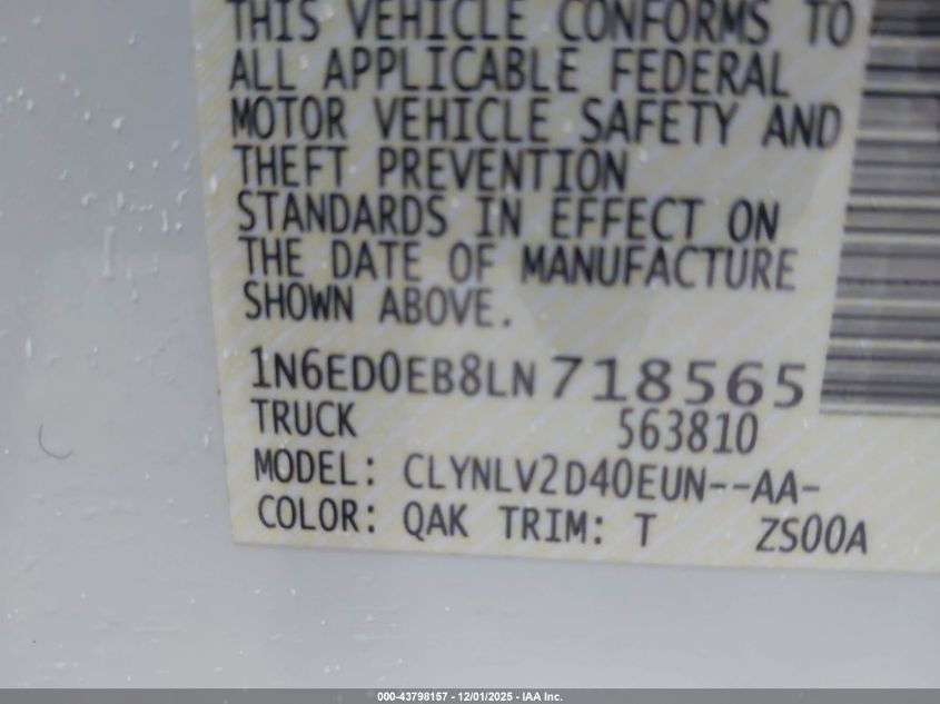 Цвет БелыйЦилиндры 6Привод Полный приводVIN 1N6ED0EB8LN718565Состояние Заводится и едет (проверено)Повреждения Передняя или задняя