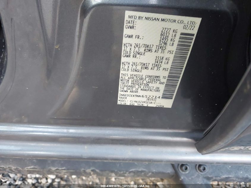 2022 NISSAN FRONTIER - 1N6ED1EK9NN652214, цвет - Серый, 3.8, Бензин, Полный привод из США