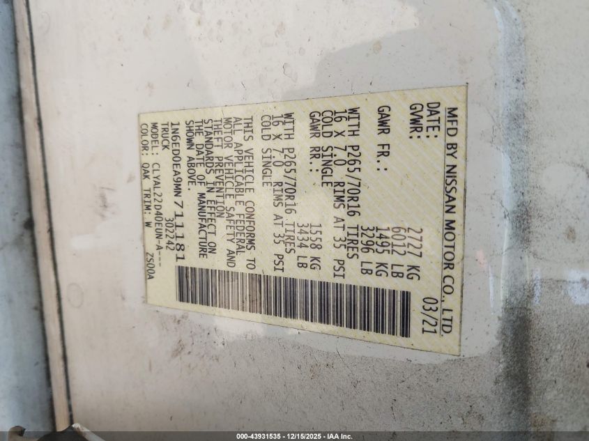 2021 NISSAN FRONTIER - 1N6ED0EA9MN711181, цвет - Желтый, 3.8, Бензин, из США