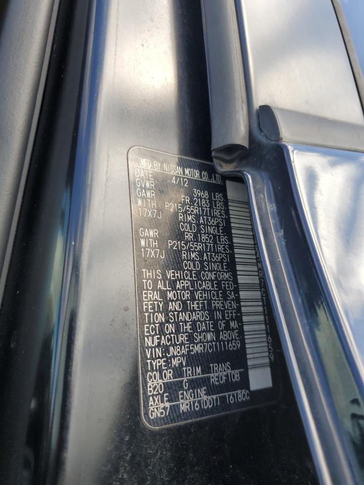 2012 NISSAN JUKE - JN8AF5MR7CT111659, цвет - Черный, 1.6, Бензин, из США