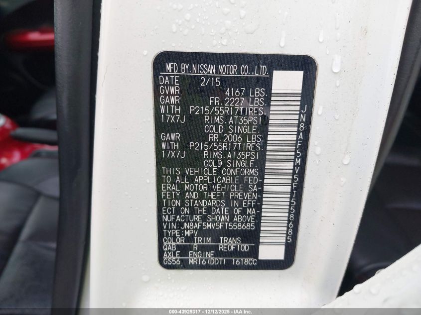 2015 NISSAN JUKE - JN8AF5MV5FT558685, цвет - Белый, 1.6, Бензин, Полный привод из США