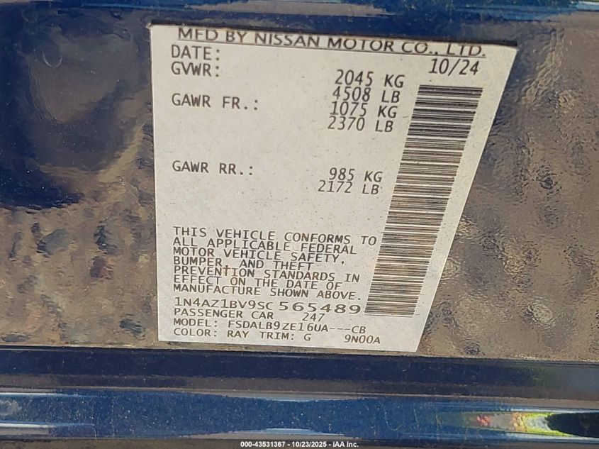 2025 NISSAN LEAF - 1N4AZ1BV9SC565489, цвет - Синий, U, Электрический, Передний привод из США