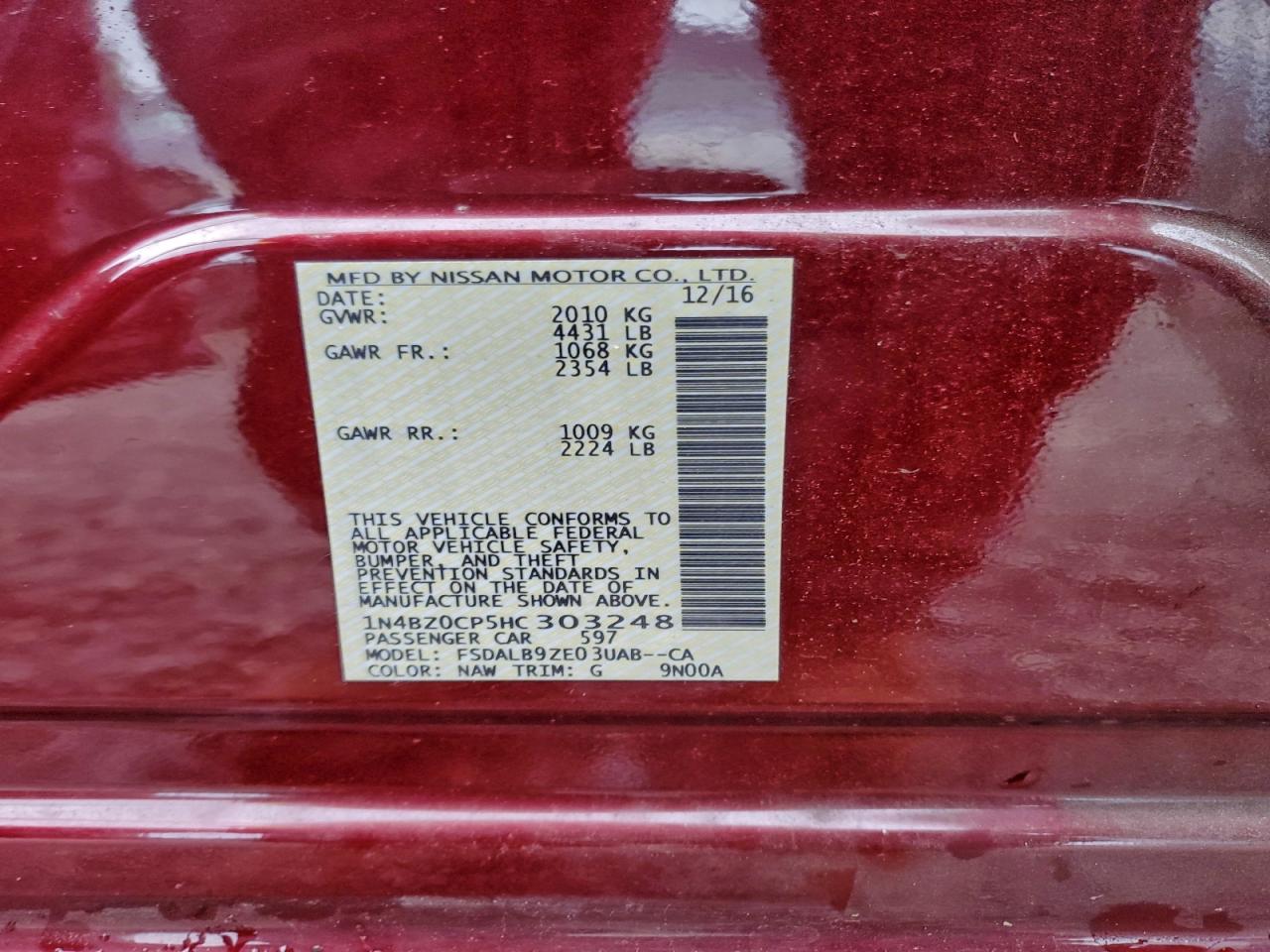 2017 NISSAN LEAF - 1N4BZ0CP5HC303248, цвет - Бургундия, U, Электрический, из США
