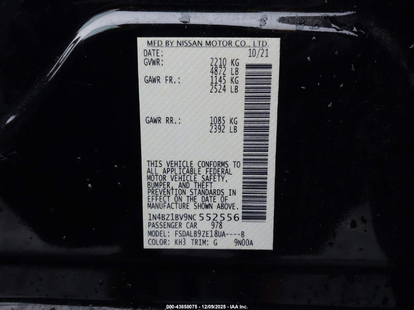 2022 NISSAN LEAF - 1N4BZ1BV9NC552556, цвет - Черный, U, Электрический, Передний привод из США