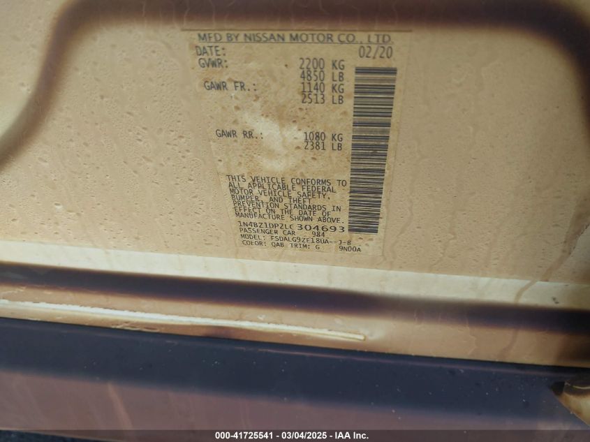2020 NISSAN LEAF - 1N4BZ1DP2LC304693, цвет - Белый, U, Электрический, Передний привод из США