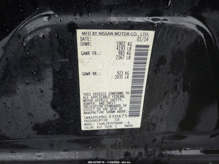2014 NISSAN LEAF - 1N4AZ0CP9EC330475, цвет - Черный, U, Электрический, Передний привод из США