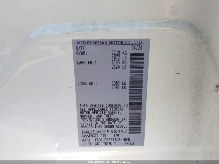2025 NISSAN LEAF - 1N4CZ1CV6SC558457, цвет - Белый, U, Электрический, Передний привод из США
