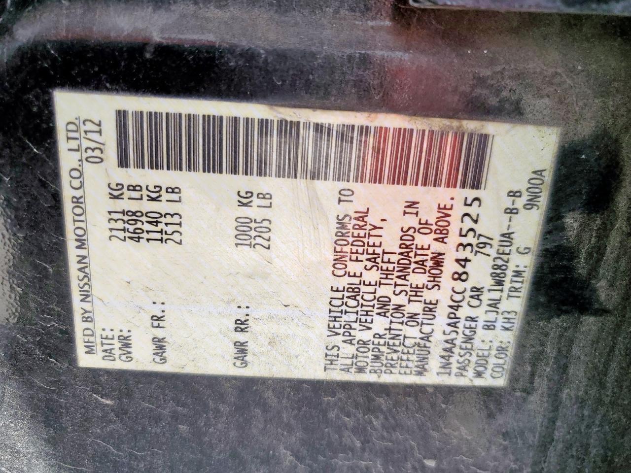 Цвет ЧерныйЦилиндры 6VIN 1N4AA5AP4CC843525Состояние НеизвестноПовреждения Передняя или задняяДата аукциона 2025-10-06