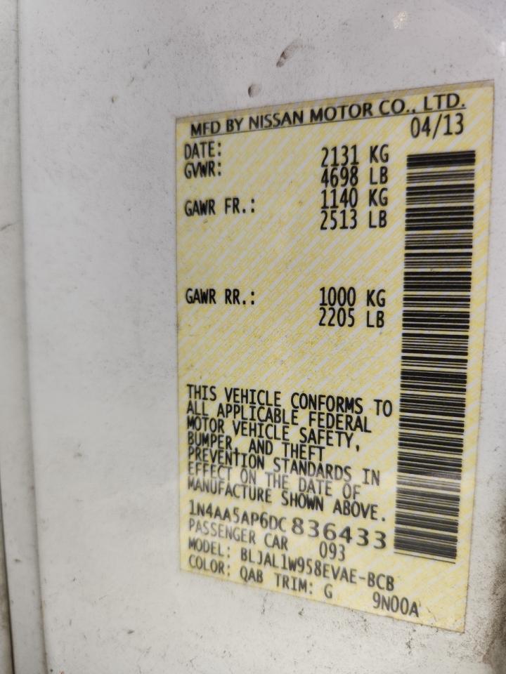 2013 NISSAN MAXIMA - 1N4AA5AP6DC836433, цвет - Белый, 3.5, Бензин, из США