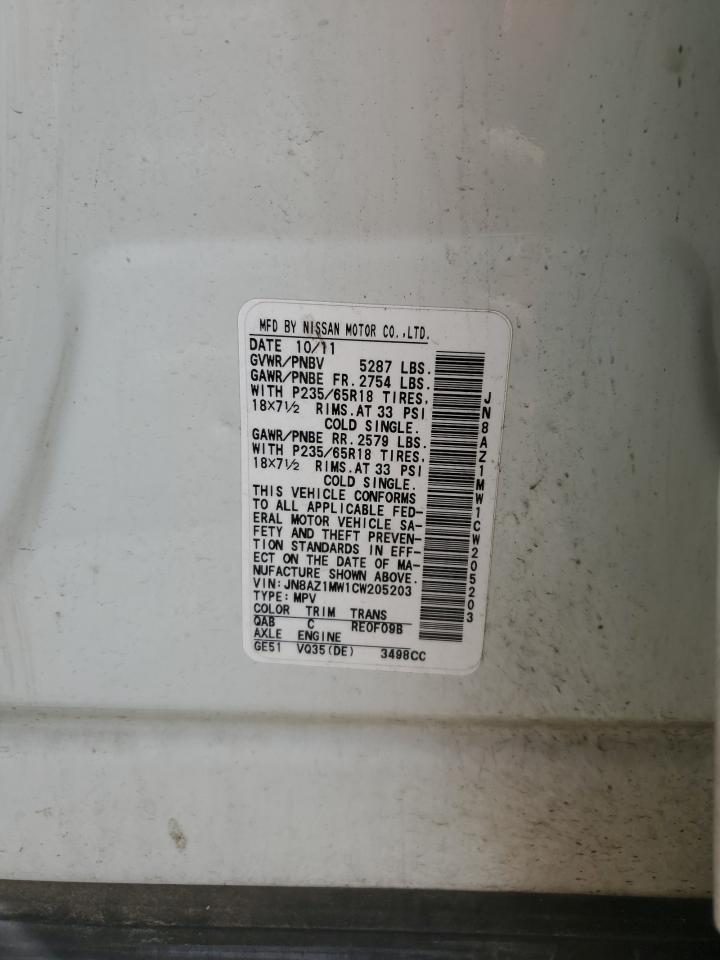 2012 NISSAN MURANO - JN8AZ1MW1CW205203, цвет - Белый, 3.5, Бензин, Полный привод из США