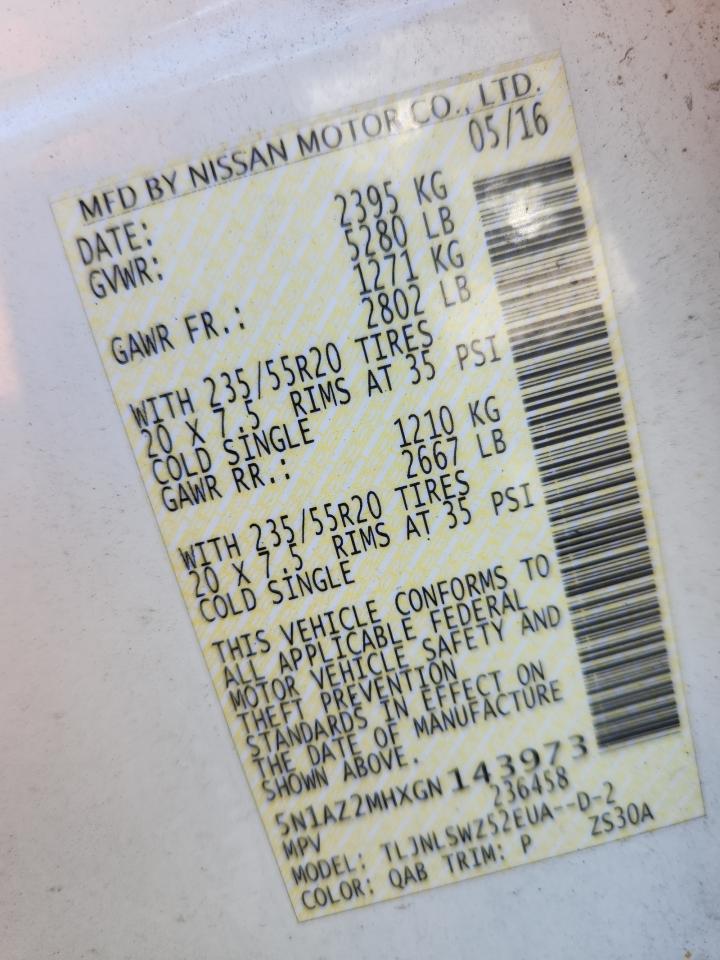 2016 NISSAN MURANO - 5N1AZ2MHXGN143973, цвет - Белый, 3.5, Бензин, Полный привод из США