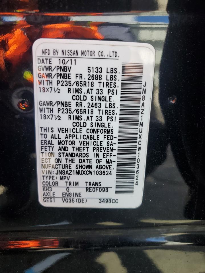 2012 NISSAN MURANO - JN8AZ1MUXCW103624, цвет - Черный, 3.5, Бензин, из США