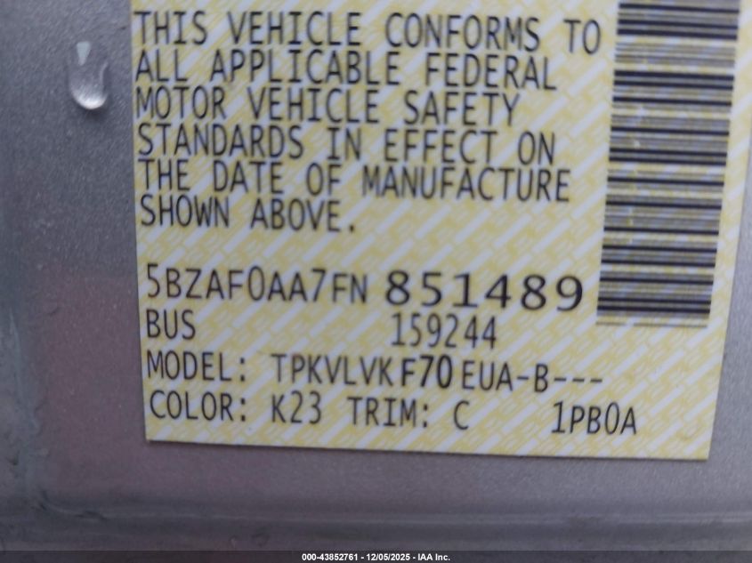 2015 NISSAN NV3500 - 5BZAF0AA7FN851489, цвет - Серебряный, 5.6, Бензин, Задний привод из США