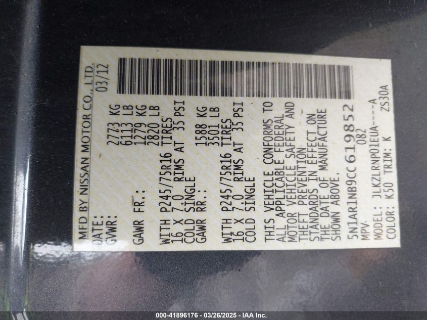 Цвет СерыйЦилиндры 6Привод Полный приводVIN 5N1AR1NB9CC619852Состояние Заводится и едет (проверено)Повреждения Неизвестно
