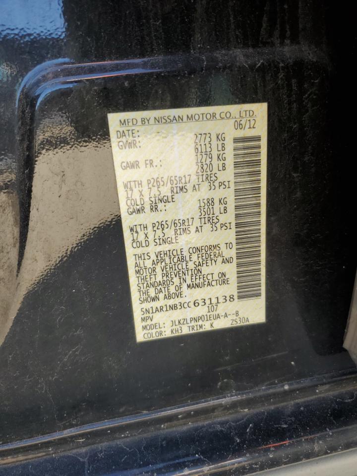 2012 NISSAN PATHFINDER - 5N1AR1NB3CC631138, цвет - Черный, 4.0, Бензин, 4x4 с задним приводом из США