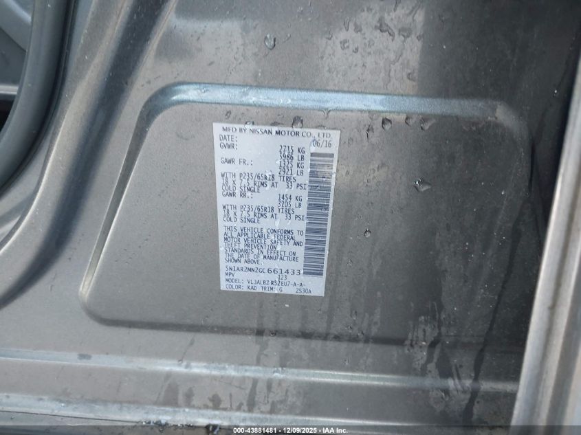 2016 NISSAN PATHFINDER - 5N1AR2MN2GC661433, цвет - Серый, 3.5, Бензин, Передний привод из США