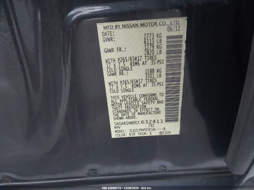 2012 NISSAN PATHFINDER - 5N1AR1NB0CC632411, цвет - Черный, 4.0, Бензин, Полный привод из США