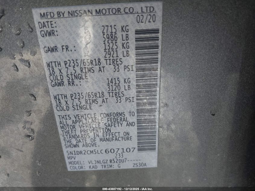 2020 NISSAN PATHFINDER - 5N1DR2CM5LC607107, цвет - Серый, 3.5, Бензин, Полный привод из США