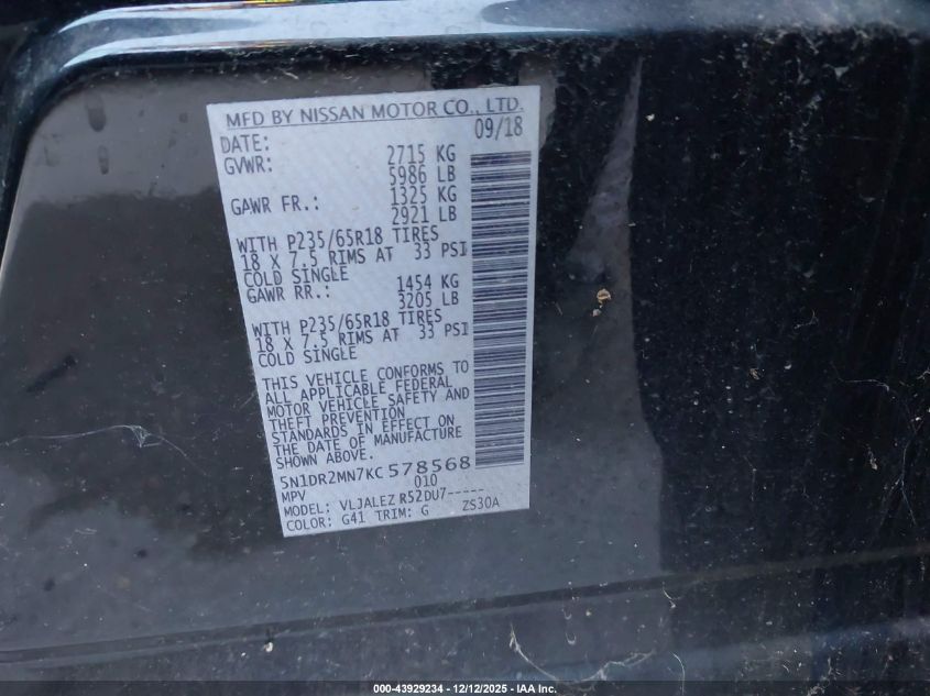 2019 NISSAN PATHFINDER - 5N1DR2MN7KC578568, цвет - Черный, 3.5, Бензин, Передний привод из США