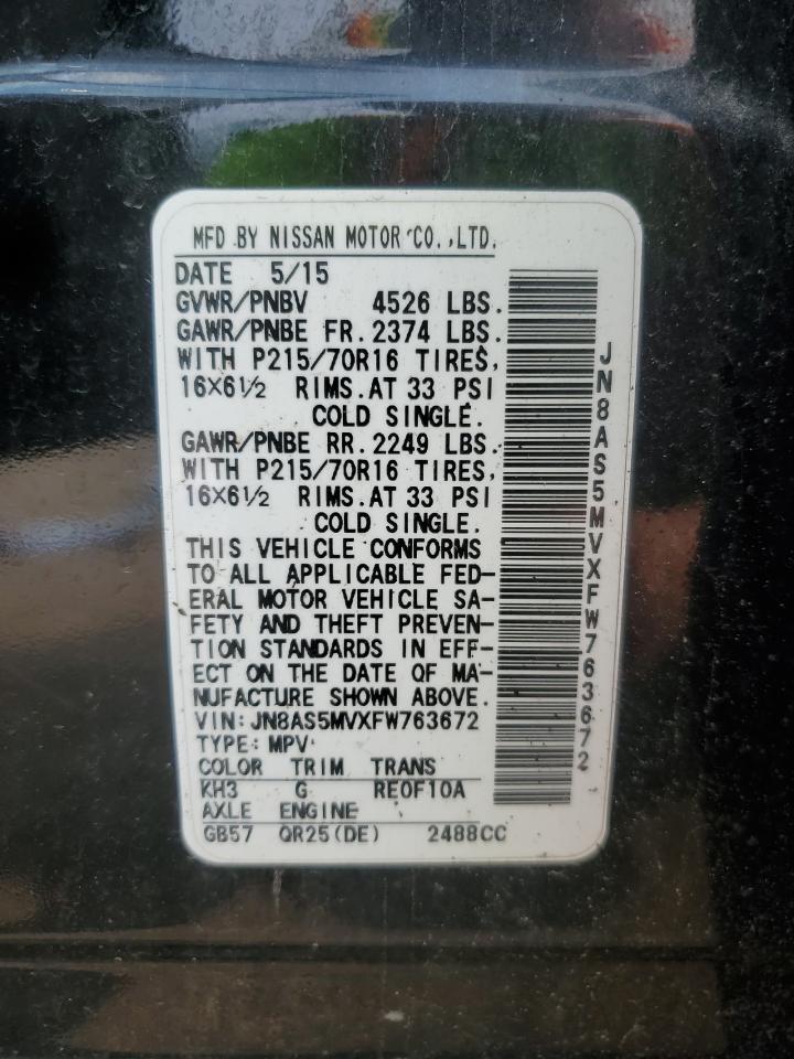 2015 NISSAN ROGUE - JN8AS5MVXFW763672, цвет - Древесный уголь, 2.5, Бензин, Полный привод из США