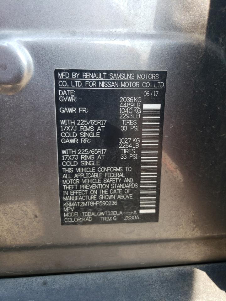2017 NISSAN ROGUE - KNMAT2MT8HP590236, цвет - Серый, 2.5, Бензин, из США