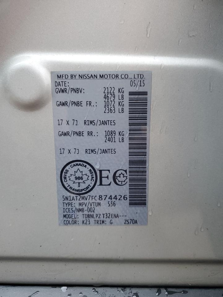 2015 NISSAN ROGUE - 5N1AT2MV7FC874426, цвет - Серебряный, 2.5, Бензин, Полный привод из США
