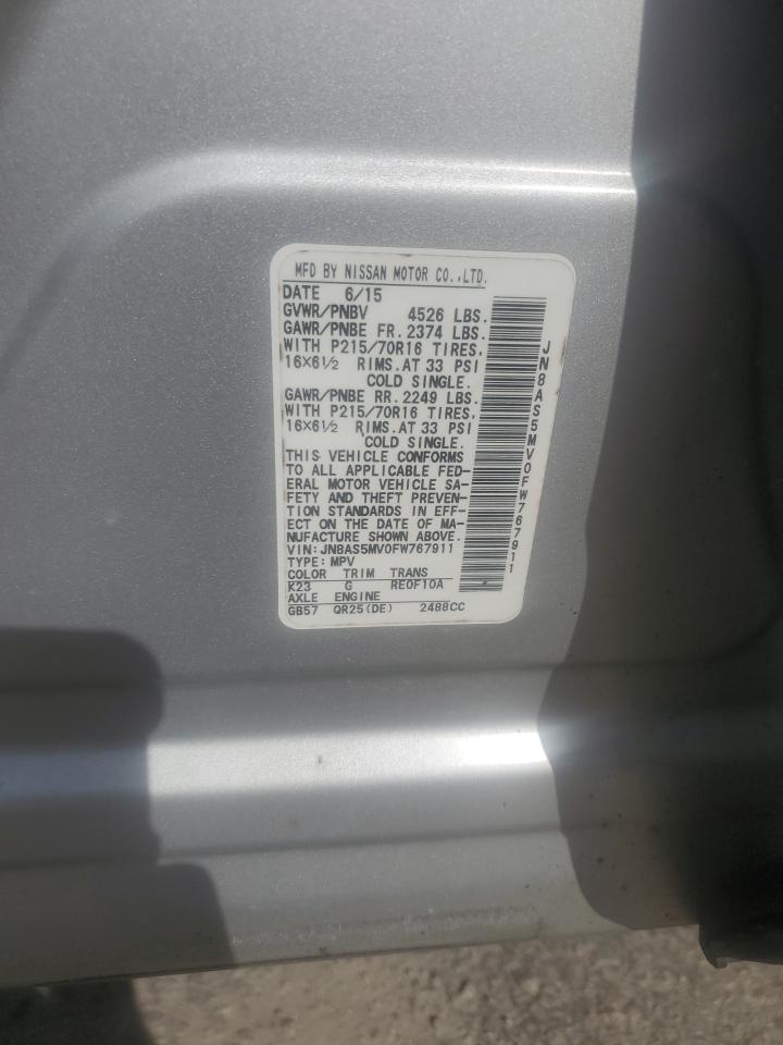 2015 NISSAN ROGUE - JN8AS5MV0FW767911, цвет - Серебряный, 2.5, Бензин, Полный привод из США