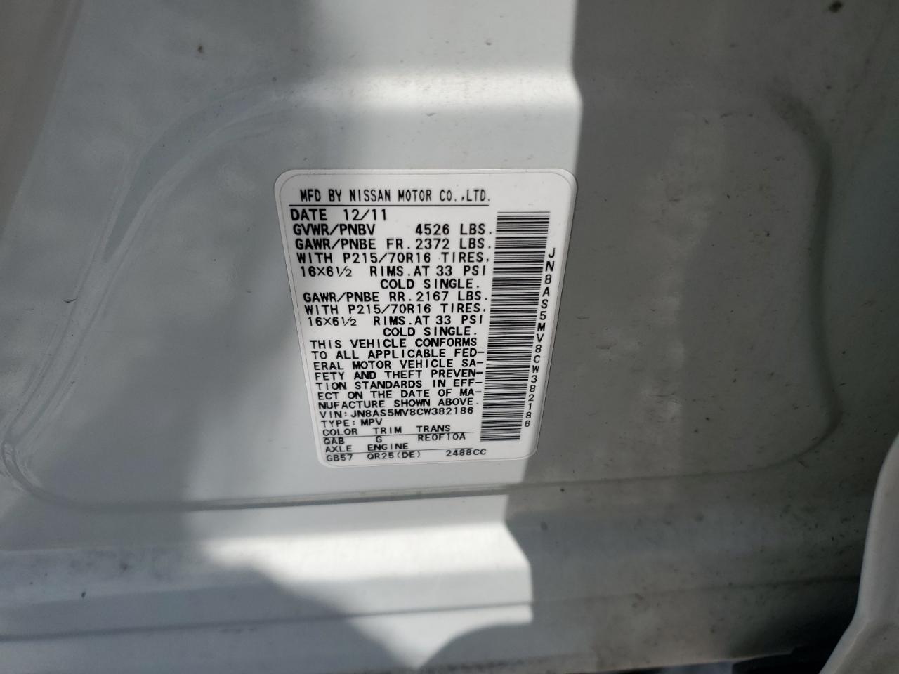 2012 NISSAN ROGUE - JN8AS5MV8CW382186, цвет - Белый, 2.5, Бензин, Полный привод из США