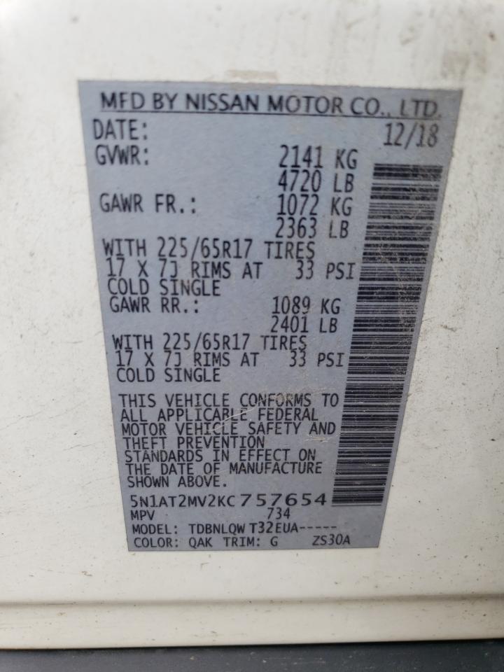 2019 NISSAN ROGUE - 5N1AT2MV2KC757654, цвет - Белый, 2.5, Бензин, Полный привод из США